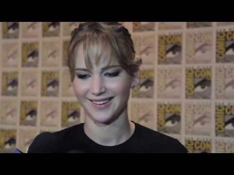 - Jennifer Lawrence habla de su experiencia de regresar a grabar. Le preguntan que si fuese amiga de Katniss cómo la aconsejaría de si elegir a Peeta o Gale, ella dice que una buena amiga no hace eso, que sería mejor que ella tome la decisión.